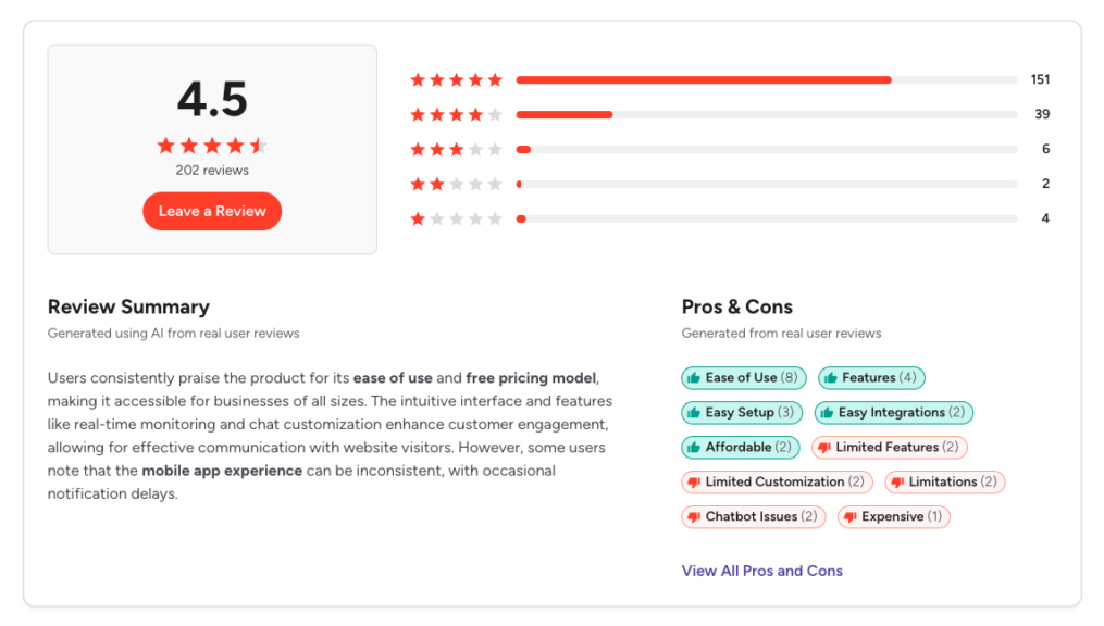 | Generous free tier (50 live chat conversations/month) | Reports of account suspensions without prior warning |